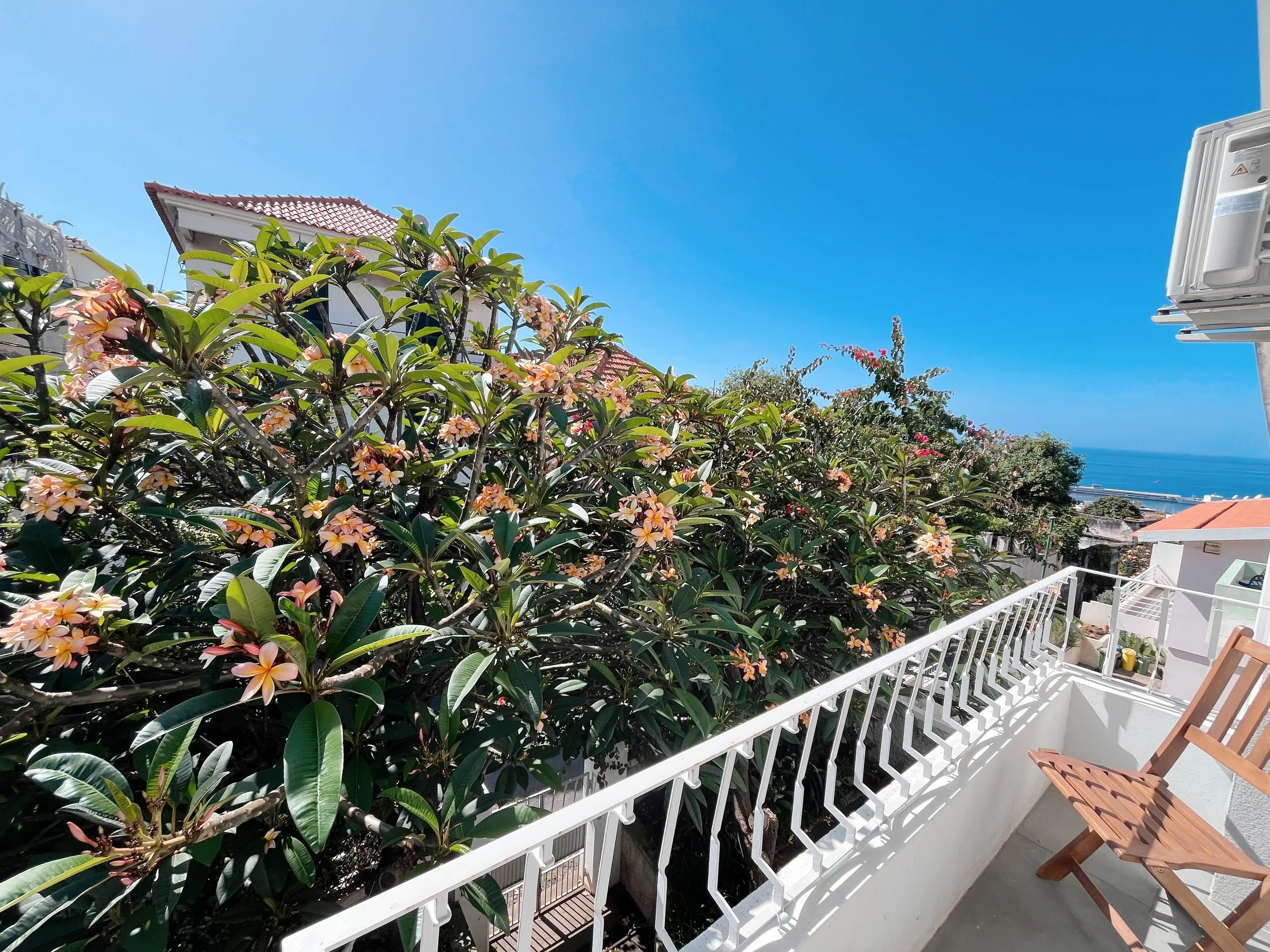 Beautiful garden, sea view balconies and sunny terraces with outdoor tables, seats and parasol